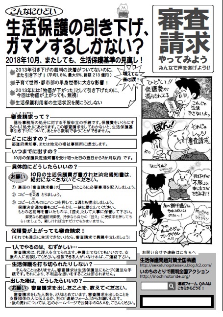 今回の引下げに対しても、まずは全国で1万件の審査請求運動に取り組みます。