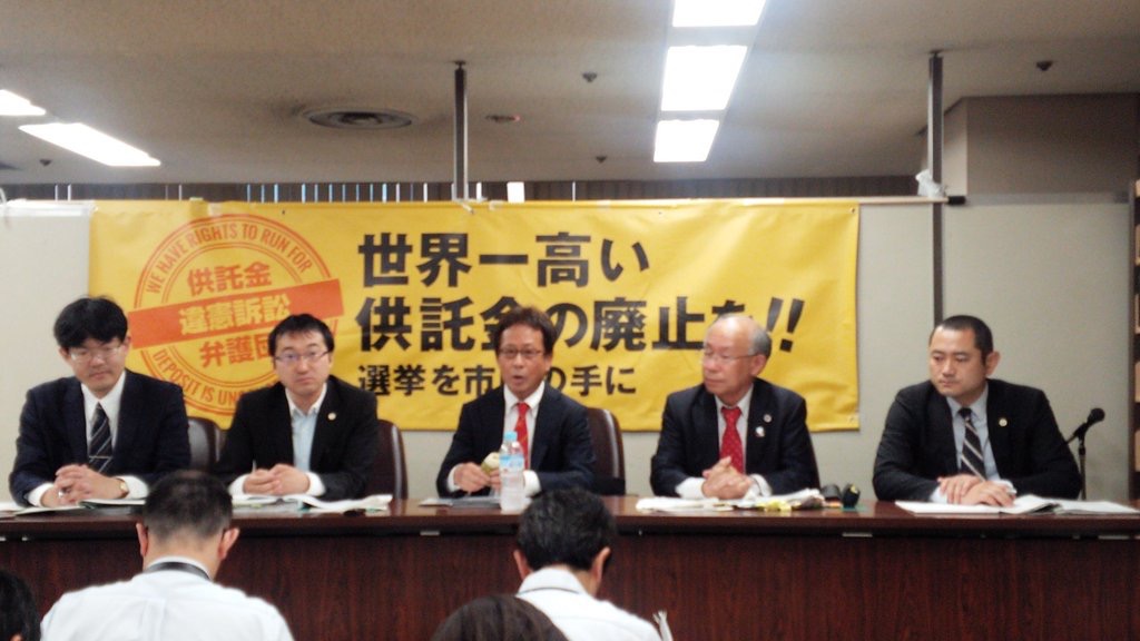そこで、Aさんのように、経済的理由によって国政選挙に立候補できない現行の選挙供託金制度は不当であると考える弁護士有志によって、選挙供託金違憲訴訟弁護団が結成されました(弁護団長:宇都宮健児弁護士)。